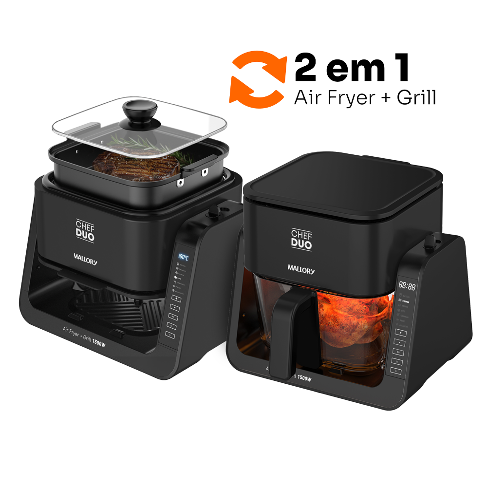 Pensando nisso, a Mallory apresenta a Air Fryer Chef Duo: um produto que une air fryer e grill no mesmo equipamento, para que você escolha o modo ideal para cada momento.
